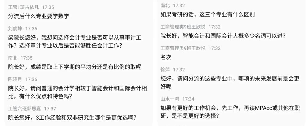 自2019年以来,会计学院开始工商管理大类招生,学院秉持“志愿优先,成绩参考”的原则在大二时选择会计学、审计学、财务管理专业,其中会计学专业分中国注册会计师、国际会计、智能会计、会计学四个方向,因此专业如何选择就成了大一新生和新生家长密切关注的问题。此次讲座,梁运吉从各专业人才培养方案的课程设置、各专业的背景及特色、学生如何进行专业选择进行了清晰地讲解。会议最后,梁运吉解答了学生提出的问题以及各个专业目前就业情况。学院21级学生纷纷表示,在疫情形势严峻的当下,学院为21级学生解答了自己最关心的专业选择问题,通过了解自身优势明确了如何选择适合自己的专业,确定了近期的学习目标,找到了职业规划方向。