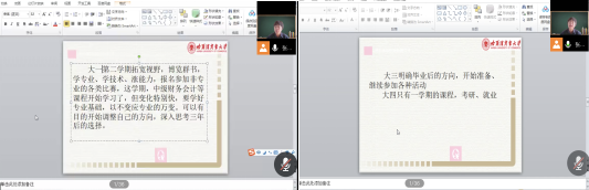 会计学院学生工作队伍立足学生思想政治引领,坚守思政工作主阵地,充分利用网络平台,创新网络思想政治教育,4月9日下午,举办云端系列讲座“与会计相伴,与良师同行”第三期——谈如何有意义的度过大学生活,会计学院院长张劲松为主讲人。会计学院党委副书记王博、全体学工队伍教师,以及各年级300余名学生参加讲座。学院21级辅导员李慧铭主持会议。