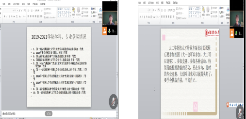 张劲松结合专业特点,与同学们分享在大学的不同时期应该做哪些事、做哪些规划,并向同学们介绍优秀学长、学姐们的成功案例。张劲松就同学们提出的有关学业规划、如何学习专业知识等问题,作出详细的建议与指导,并鼓励同学们要积极参加学校各种活动、竞赛等,拓宽视野,增长才干。张劲松指出,学院坚持“通基础,精专业,重实践”人才培养特点,重视多学科交叉发展,同学们要在四年的学习中不断提升业务水平,在完成课业的同时,涉猎多种学科知识,积极利用学校提供的资源平台,将其转为自身价值。