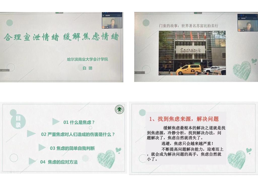 为进一步加强疫情防控期间学生的心理健康教育,缓解校园封闭管理给学生带来的焦虑情绪困扰,鼓励学生合理宣泄情绪,通过科学的方法调适身心、保持积极心态,4月24日下午,会计学院通过线上举办“与会计相伴,与名师同行”系列讲座第六期——“小白老师带你合理宣泄情绪,缓解焦虑情绪”讲座,会计学院团委书记白璐为主讲人。会计学院党委副书记王博、全体学工队伍教师,以及各年级部分学生参加讲座。