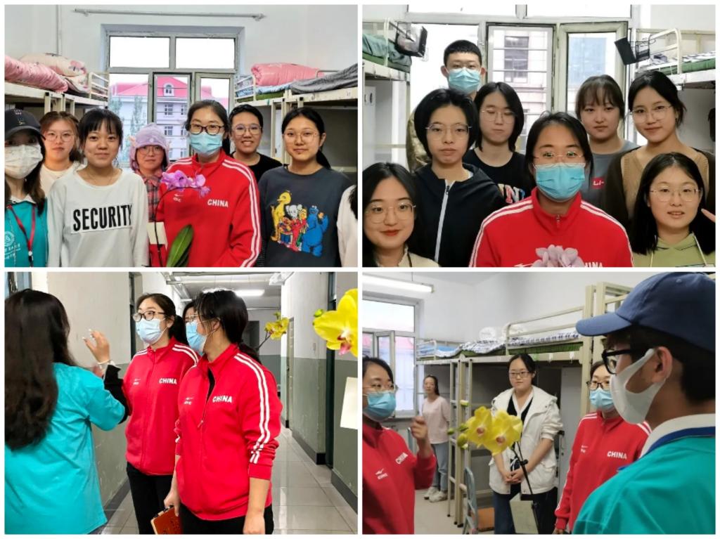 会计学院党委副书记王博携辅导员老师带领导生和舍管同学在18日晚上走访22级新生寝室,为新生送去学院精心准备的鲜花和手写贺卡,送上学院领导及老师的关怀与温暖,嘱托同学们注意寝室安全与卫生,倡导同学们建设文明温馨的寝室。
