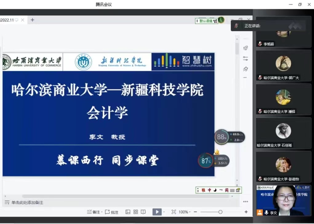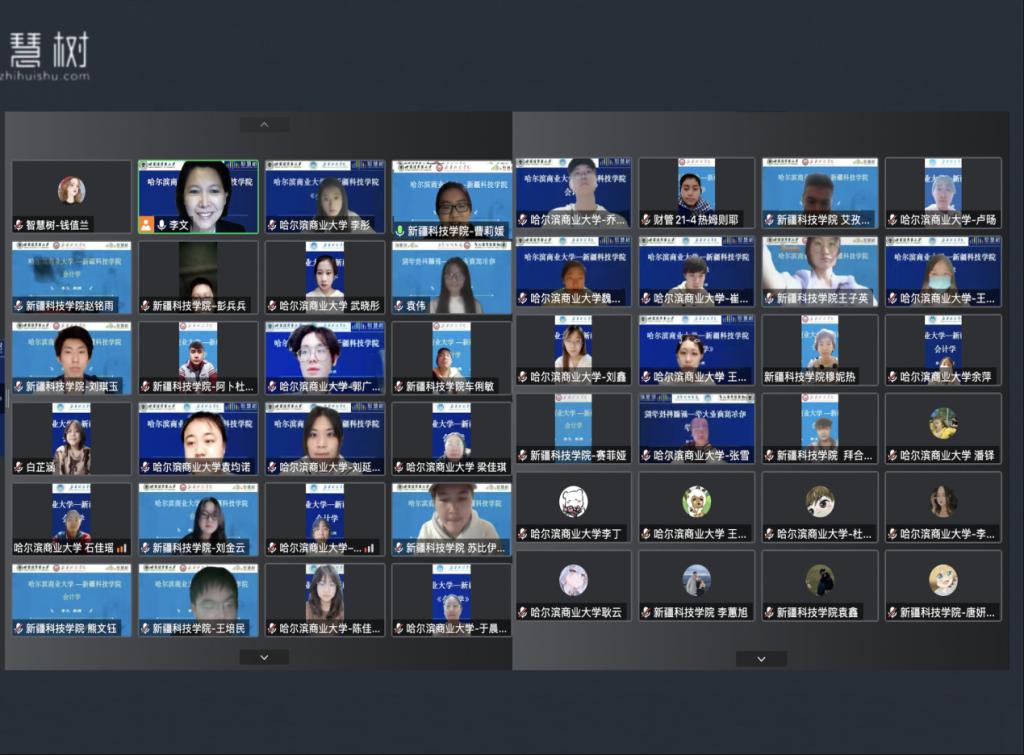 11月9日16时,《会计学》“慕课西行 同步课堂”教学活动如期进行,哈尔滨商业大学75名同学、新疆科技学院110名同学齐聚云端。
