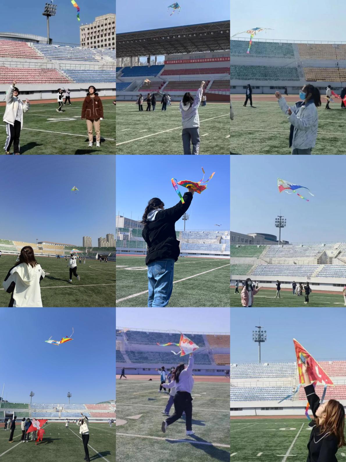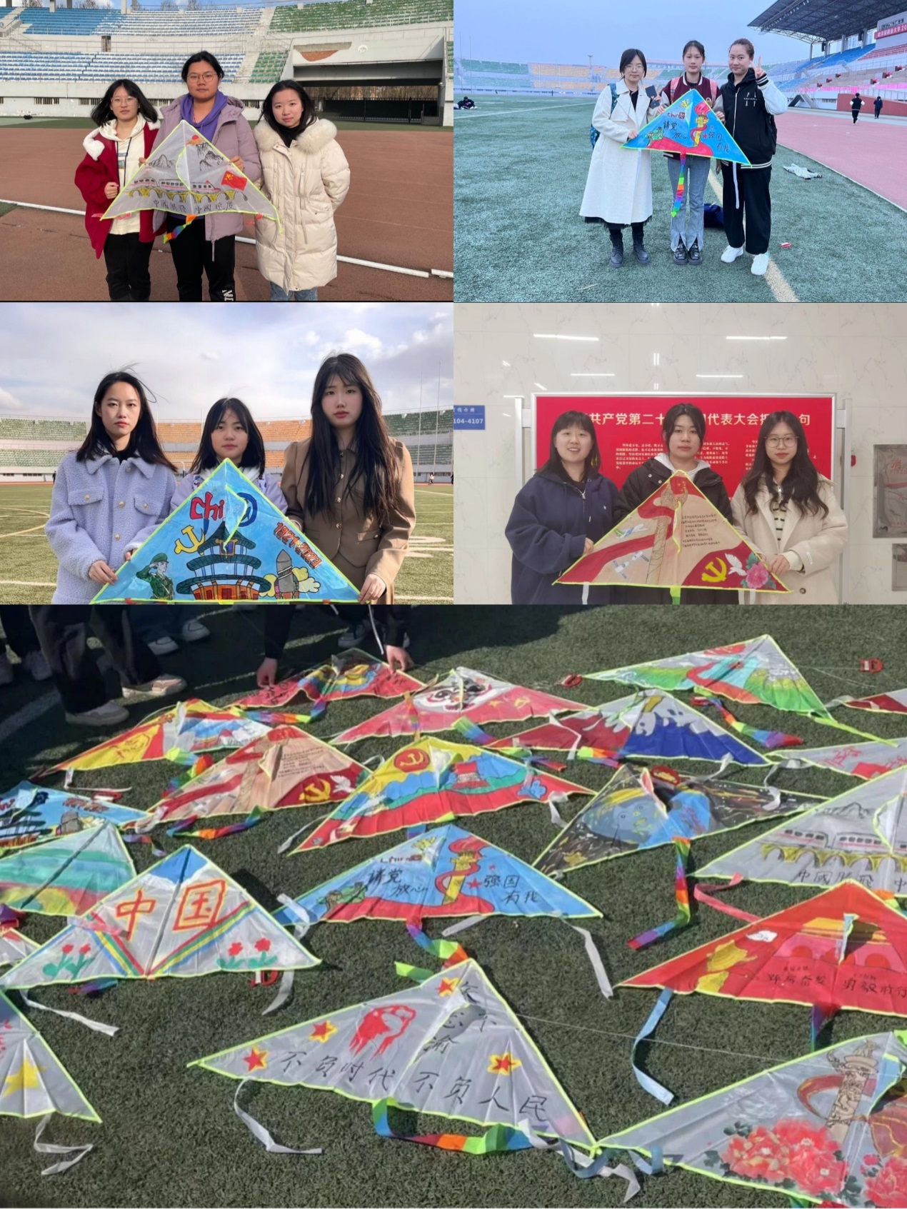各小组成员通力协作,以纸鸢为画布,用彩色画笔悉心描绘了对党和国家的热爱和赞美,党旗飘飘、二十大金句、宏伟的天安门、龙江精神……写下的是对国家和民族的希冀和祝福,洋溢在脸上的是青春与活力。纯净的蓝色天幕上,一只只风筝乘风飞翔,一根根丝线连接着青年的初心,寄托着会计学院学生踔厉奋发的决心,放飞着对祖国腾飞的美好祝福。体育场中绽放出欢声笑语,绿色操场上青年学子奋力奔跑,尽情绽放激情与热爱。