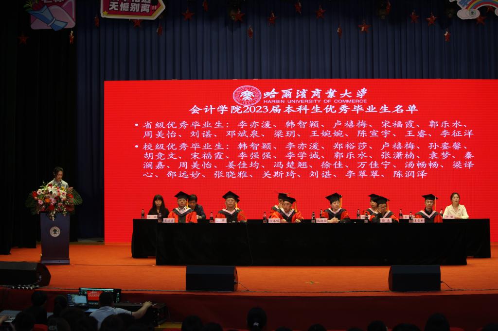 与会领导分别宣读会计学院出国(境)、升学考研、研究生优秀毕业生、本科生优秀毕业生名单,并颁发奖品及荣誉证书。