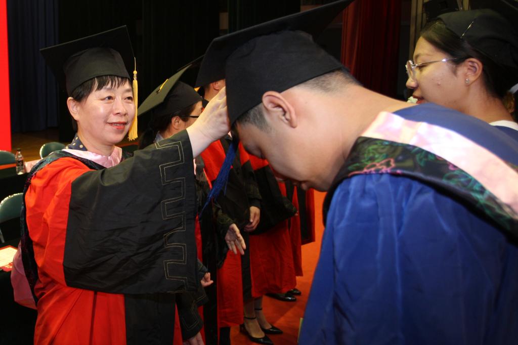 在典礼的尾声,学院教师代表为硕士、本科毕业生代表拨流苏,合影留念。拨穗礼毕,麦穗已熟。拨开的是一帘悠长青春时光,拨来的是师长的祝愿与希望。回顾大学四年的历程,毕业生们充满了感慨和不舍。