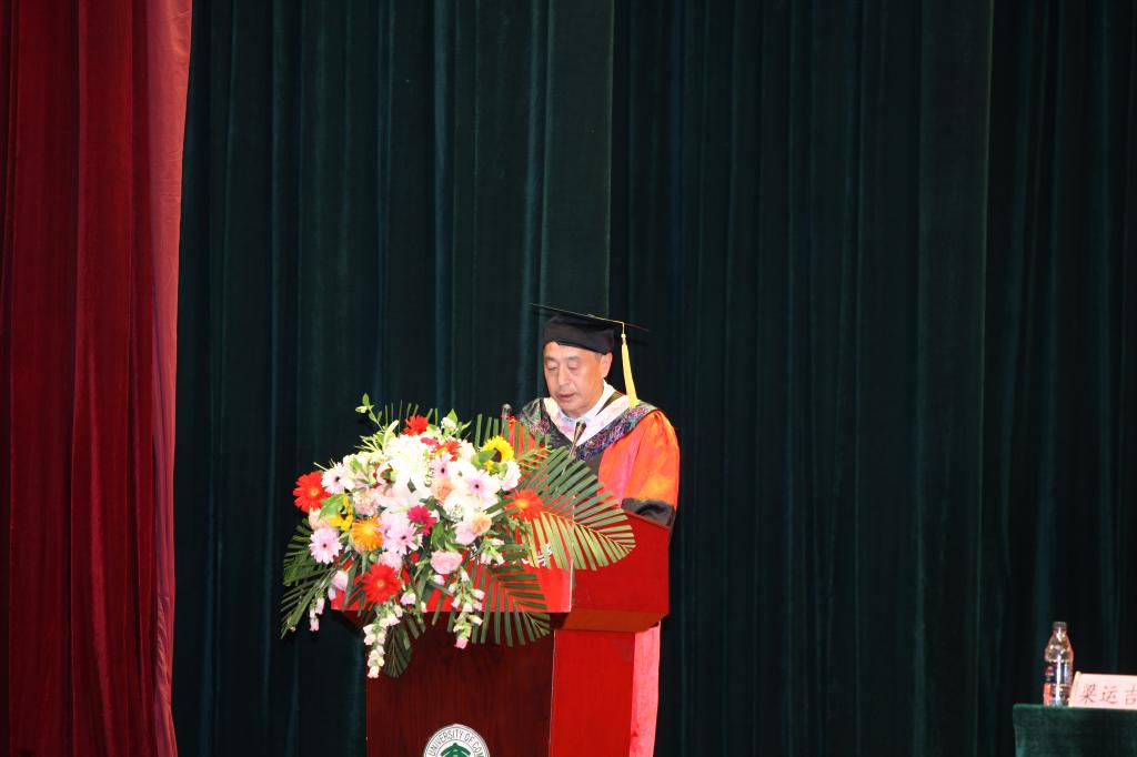 会计学院党委书记张春明发言。他向全体毕业生送上美好的毕业祝愿,感谢到场的家长代表及往届毕业生代表,希望在未来全体毕业生能够铭记家庭和学校、学院的培养,努力拼搏,用成绩回报家庭和学校。
