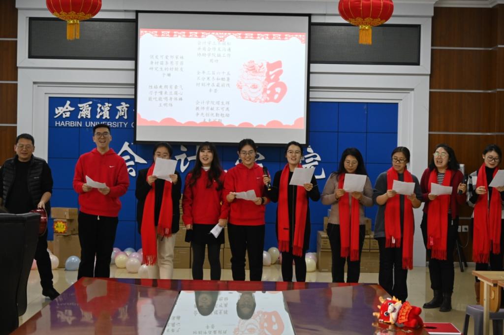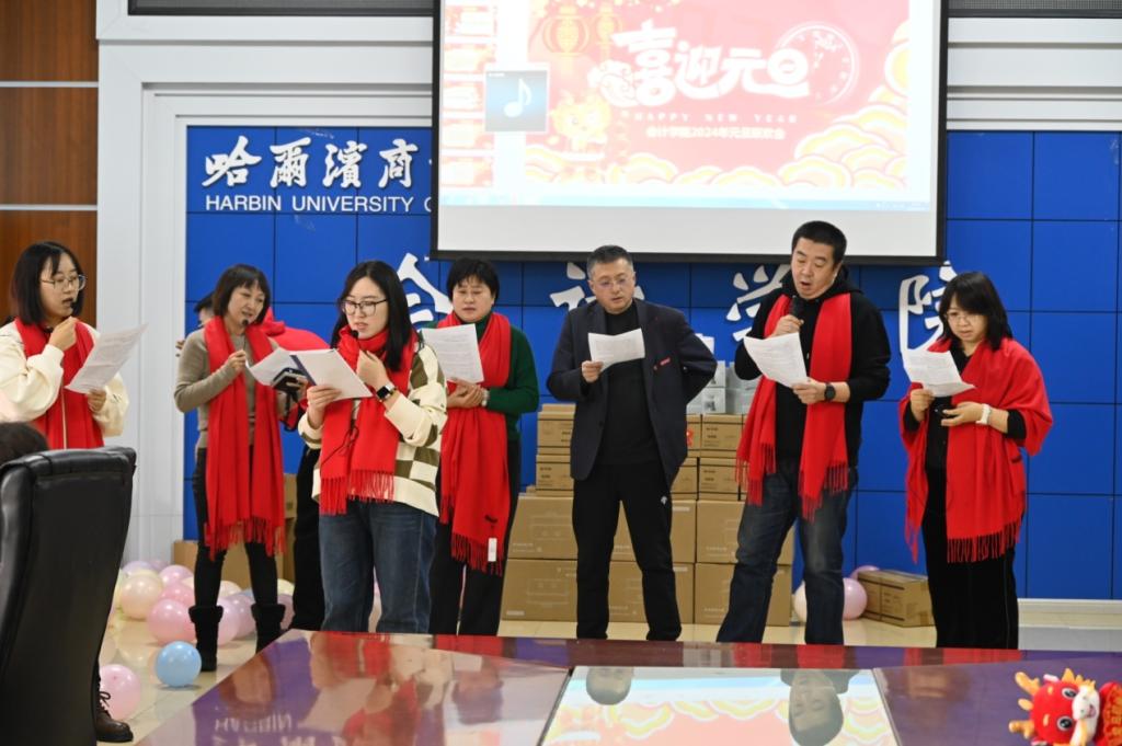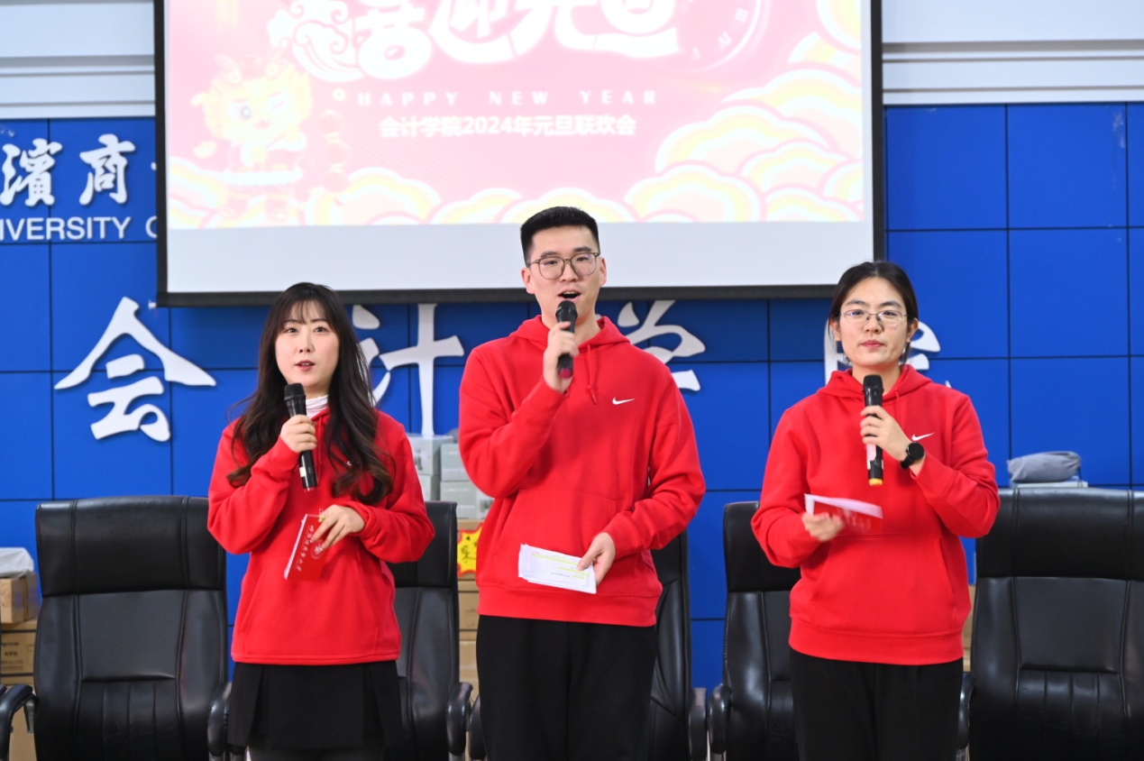 卯兔辞旧春华启,辰龙耀动气象新。为筑牢理想信念根基,增强教师凝聚力,喜迎元旦佳节,12月29日,会计学院举办“凝心聚力创佳绩 砥砺奋进新征程”2024元旦联欢会。学院领导班子及全院教师70余人欢聚一堂,共庆佳节。