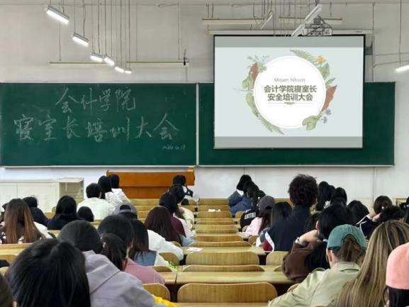 为提高学生安全意识,优化宿舍环境,根据学校学生公寓安全教育月的安排,会计学院舍务管理委员会于近日举办了以“铭记寝室安全,共筑温馨平安家园”为主题的寝室长安全教育培训会议。本次会议由会计学院舍务管理委员会的学生干部主持,2022级和2023级的寝室长们积极参与。