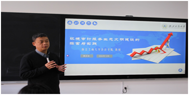 为开拓学术视野,增强学院师生对学术前沿的关注度,12月20日,浙江工商大学会计学院审计研究中心主任黄溶冰教授应邀莅临会计学院,为审计教研室全体教师和2024级研究生做《环境审计服务生态文明建设的探索与创新》讲座。会计学院副院长姜雪松教授主持本次讲座。