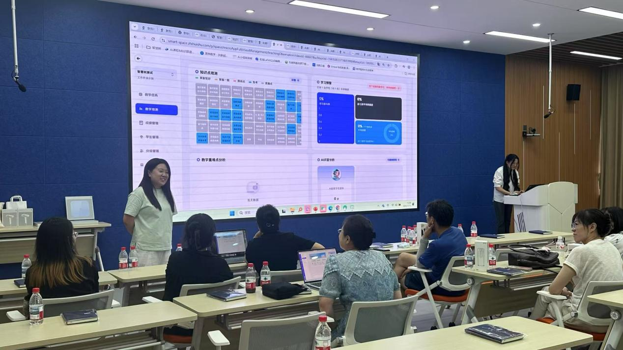 接下来,由智慧树网运行顾问谢语罗为老师们详细介绍了智慧课程如何应用,参会老师们积极参与讨论和实践操作,为下学期教学应用做准备,充分将AI工具融合到教学过程中。