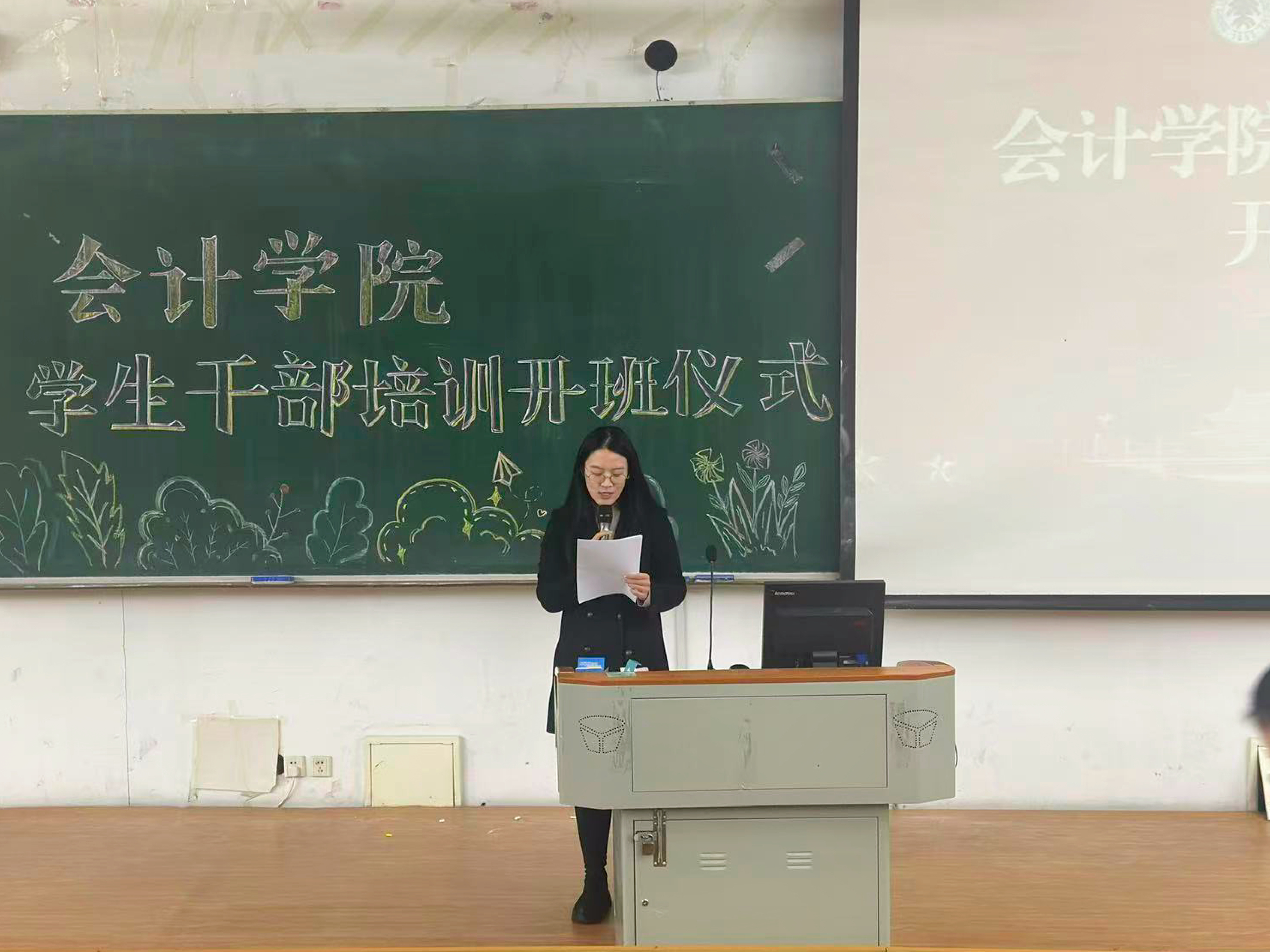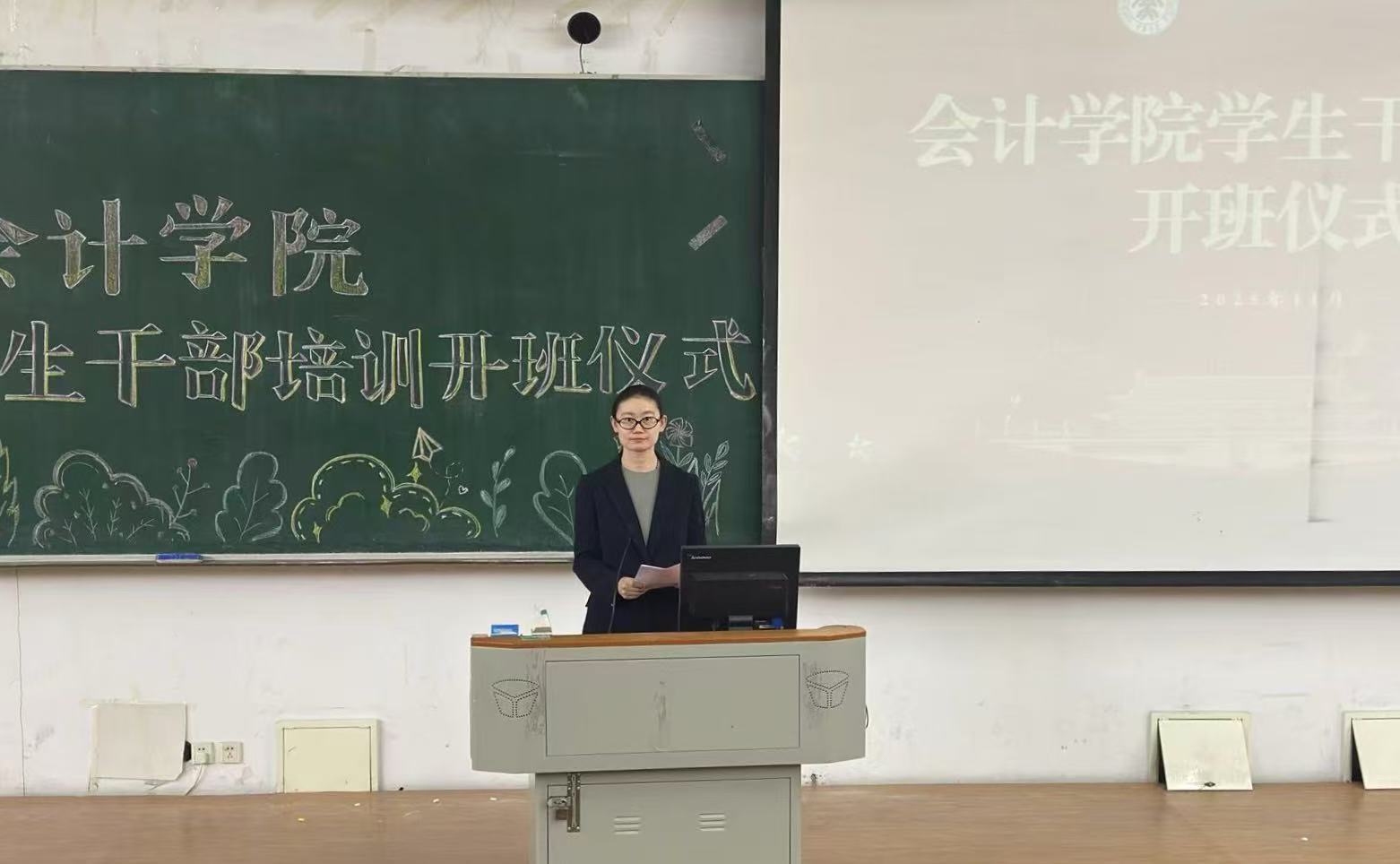 会计学院团委书记白璐宣读学生干部培训内容及培训要求。她鼓励学生干部要提高政治意识、大局意识、责任意识、合作意识和服务意识,处理好学习与工作的关系、同学与老师的关系、集体利益与个人利益的关系。她表示,希望同学们不断加强理论学习,深刻理解时代赋予青年的历史使命,将个人成长融入国家发展和民族复兴的伟大征程中,让青春在为祖国、为人民的奉献中焕发绚丽光彩。