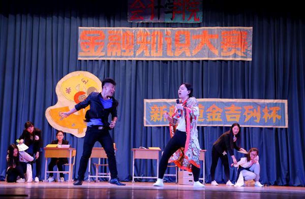 决赛分为三个环节:火眼金睛,会意江湖和一站到底。伴随学生会民舞部古韵古风的开场舞《十面埋伏》,比赛正式拉开帷幕。第一环节火眼金睛——财务场景影片纠错,在现实情景中判断金融常识的对错;第二环节会意江湖——金融新闻别样播报,在轻松的氛围中教会大家职业道德和准则;第三环节一站到底,在激烈的角逐里将现场的气氛燃向高潮。选手们实力相当、战况激烈,最后四号选手陈新宇同学脱颖而出夺下桂冠。比赛接近尾声,声乐部与现舞部为同学们带来火热的表演。随后,颁奖环节正式开始,老师们分别为四位获奖选手颁发丰厚的奖品。