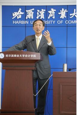 2017年5月17日,会计学院在1501学术报告厅举办了“会计与商业计量人才的国际趋势”主题讲座活动。本次讲座嘉宾是台湾政治大学会计学系教授、博士生导师、台湾无形资产暨企业评价协会理事长苏瓜藤教授。哈尔滨商业大学会计学院院长、博士生导师张林教授主持了本次讲座。张林院长表示能够邀请到苏教授这样在国内外具有重大影响的专家是学院的一件幸事,希望同学们能够认真学习苏教授的讲座内容,从中有所收获,在未来可以有更多机会在两岸学术活动中有所表现。