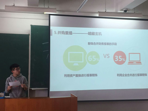 本期论坛的主题是财务舞弊,主要通过案例分析的方法对财务舞弊的手段进行阐述,借助书籍《财务局中局》来做理论支撑。首先,对财务舞弊的相关理论进行详细的阐述;然后,由七名同学采用发散创新的思维方式分别介绍了财务舞弊的几大招数,具体为:固定资产价值确认的舞弊,偷税漏税的招数,会计电算化舞弊等;此外,以“青鸟华光”财务舞弊为案例,分析了上市公司财务舞弊的行为,并提出解决措施;最后,将改编的相声《大牛逃税记》作为此次活动的结尾,突出论坛的主旨,使在场的同学们对这本书产生极大地阅读兴趣。