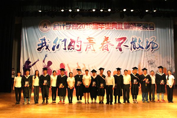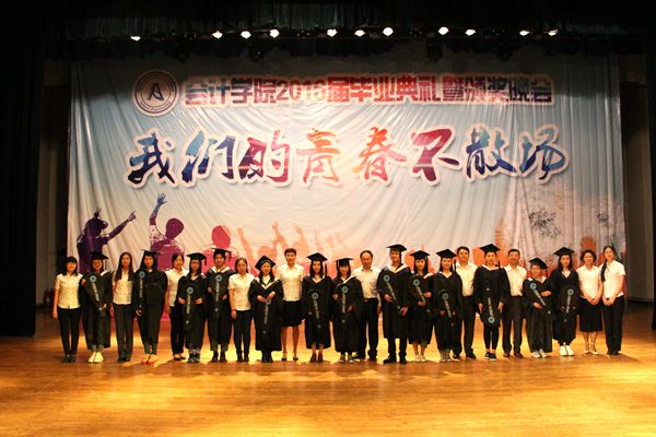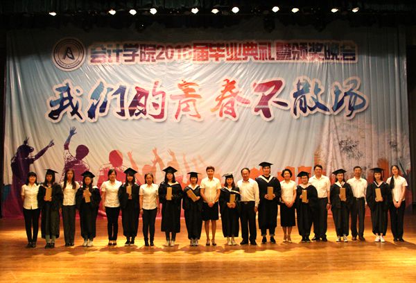 2016年6月2日14:30,会计学院2016届毕业典礼暨颁奖晚会在B区大礼堂隆重举行。莅临本次毕业典礼的领导及嘉宾有:会计学院党总支书记陈慧华教授、院长张林教授、副院长徐鹿教授、党总支副书记刘天副教授、专业会计教研室主任李文教授、团委书记兼2012级辅导员王博老师、团委副书记郑磊和全体辅导员老师。各位院领导及老师与2016届毕业生共同见证了这一难忘时刻,为他们大学四年生涯画上了圆满的句号。 典礼由党总支副书记刘天副教授主持。