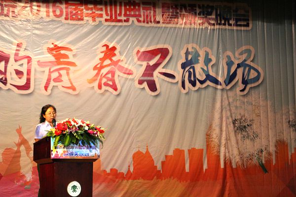 伴随着庄严的国歌声,毕业典礼正式开始。首先,陈慧华进行了激情洋溢的讲话。她对经过四年不懈努力与奋斗顺利毕业的2016届毕业生表示了热烈的祝贺,并表扬他们“拼搏进取、勇于创新”的精神,同时对他们提出了殷切的希望,她还真诚地祝愿全体毕业生征途顺利,能勇敢、坚强、成熟地面对未来。