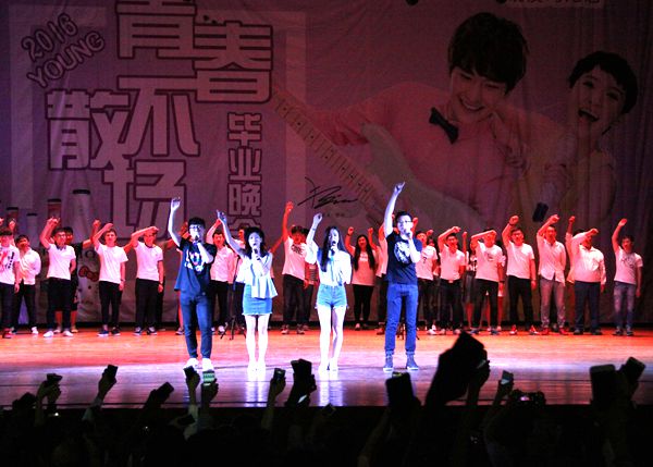 刘天作总结性发言后,毕业晚会正式开始,毕业典礼的气氛进入高潮。学生会现舞部、民舞部,党员活动站,学资办及部分毕业生代表为大家带来了准备已久的精彩表演,他们活力四射,用精彩绝伦的表演点燃了大家的无限激情,也唤醒了毕业生心中的不舍之情。最后,所有毕业生一起上台与老师共同合唱歌曲《祝你一路顺风》,毕业典礼在一片掌声中落下帷幕。