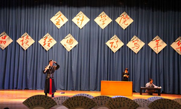 下半场进入到自主选题表演阶段,四组表演团队通过默契的团队配合和前期充分的准备,围绕文学经典,以相声、百家讲坛、走秀等艺术形式进行了丰富有趣的文学展示,充分展现了会计学院学子的创造力和表演力,并且让同学们进一步了解了各名著的创作背景和创作意图,同时也深刻了同学们对经典的见解。