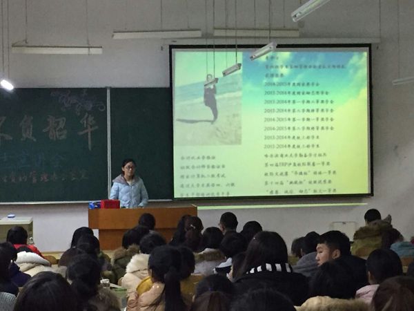 其次,多次获得校级奖学金,国家励志奖学金,国家奖学金,荣获过校级三好学生,校级勤奋学习标兵,曾担任过学资办认定部部长的李泽方向我们分享了丰富的学习经验,她通过PPT演示,教导我们多读书,读好书,好读书,不要为了分数而读书,总而言之,在大学里最重要的还是多读书,多学习。