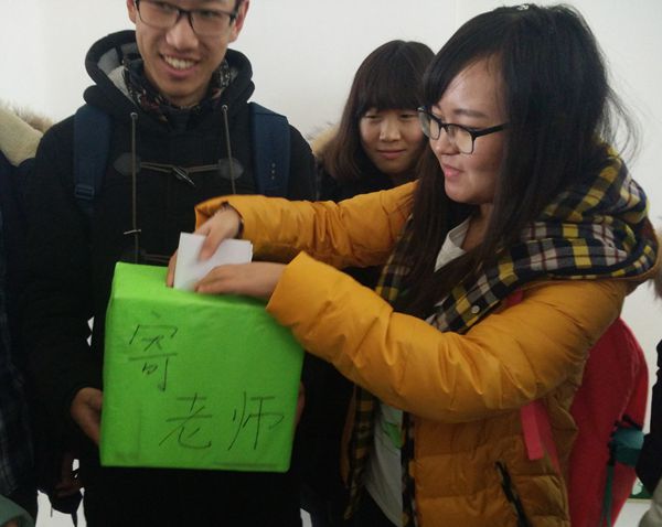 首先进行的是以“感恩的心,拥抱的暖”为主题的活动,此次活动组织学生在校园内进行感恩,给予校园所有付出辛勤劳动的老师、食堂工人、宿舍保洁等工作人员一个拥抱,感谢工作人员这么多年来的默默付出。通过一个拥抱,使同学们与这些辛勤劳动的工作人员零距离接触,拉近了距离,增进了感情。接下来进行的是“三行家书传恩情”活动,通过一张张的明信片,表达了同学们对老师的爱戴以及对父母的思念,短短的三行字,却凝聚了浓浓的感恩情!