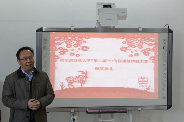 为了增强同学们对金融知识的了解,提高运用经济理论分析实际问题的能力,2015年12月4日12:00由会计学院和中信证券联合举办的 “中信杯”模拟炒股大赛颁奖典礼于主1405隆重举行。莅临本次大赛的嘉宾有会计学院党总支书记陈慧华教授,会计学院院长张林教授和会计学院辅导员老师。本次颁奖典礼由中信证券营业部负责人同时也是会计学院09届毕业生于晓宇主持。
