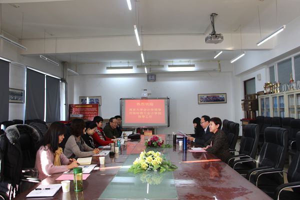 书记陈慧华教授代表会计学院对代表团来访表示热烈的欢迎;院长张林教授对高层次会计人才培养项目,以及会计领军人才的课程体系、领军人才的评价等进行了详细的介绍并说明发展规划;朱元午教授介绍了南京大学会计领军人才培养的方案,培养中取得的成绩和困惑;双方还就MPACC人才的培养进行了交流。