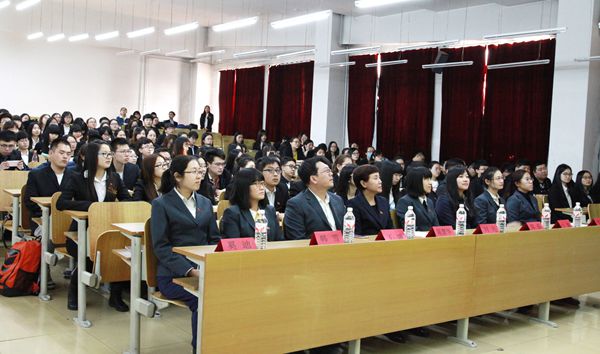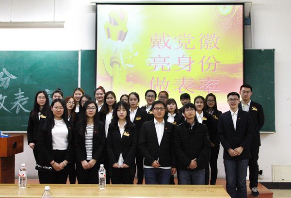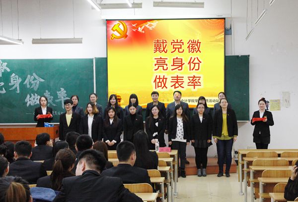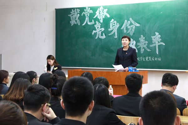 2016年3月25日,会计学院学生党员活动站组织了一次以“戴党徽,亮身份,做表率”为主题的会计学院学生党员学习大会。到场的人员有会计学院党总支书记陈慧华教授、副书记刘天教授、团委书记王博老师、团委副书记郑磊老师、2013级辅导员李慧铭老师、韩雪老师、2014级辅导员奚迪老师、2015级辅导员白璐老师以及会计学院全体学生党员。