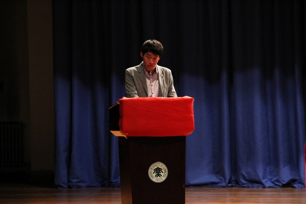 大会伊始,会计学9班苏欣然同学和学生会主席王一钧同学分别代表新生和老生发言。