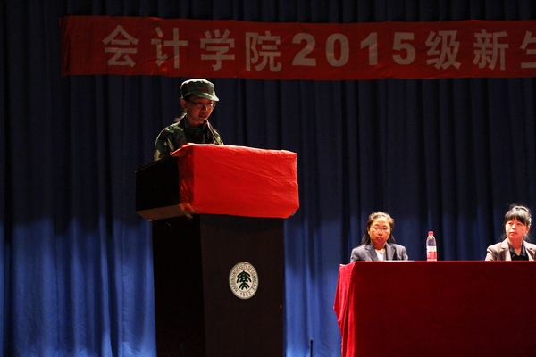 在大会开始之前,由会计学院学生会主席王一钧同学带领全体新生进行了入学宣誓仪式。宣誓结束后,大会在副书记刘天副主持下进行。