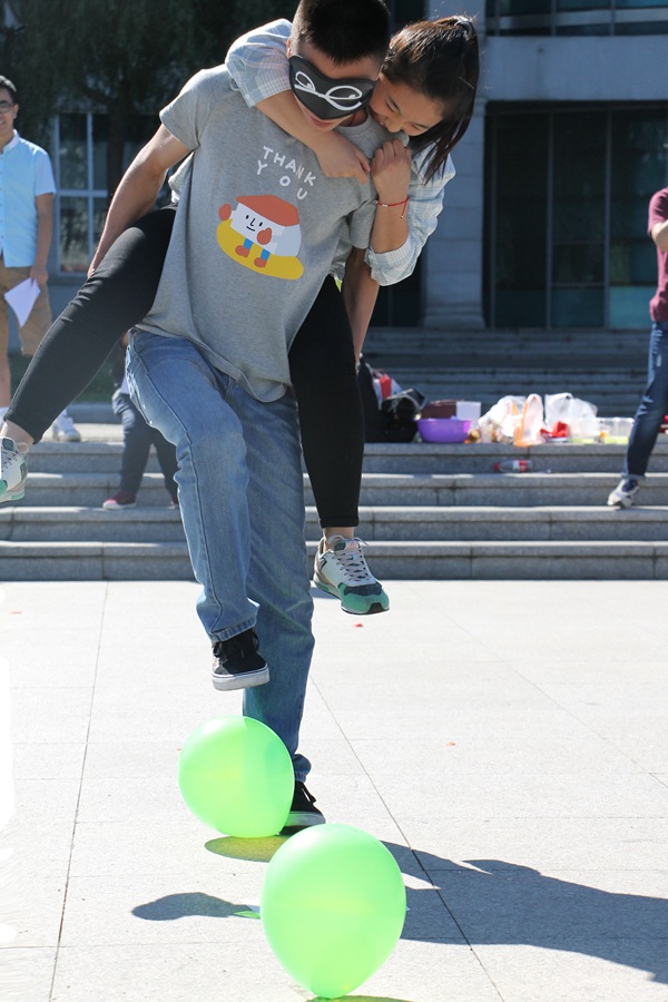 “阳光聚力行”是通过同学们之间进行游戏与比赛从而提高团队协作力与增强团队凝聚力的一次十分有意义的活动。由于第一届活动举办的十分成功,同学们积极参赛,认真配合,这次活动的进行也异常顺利。按照主持人的分组,同学们被分成了红,黄,绿三支队伍,依次进行了踢毽子,知识问答,传送乒乓球等游戏,考验了大家的协作能力与团队精神。比赛过程中,同学们都使出浑身解数,三队的成绩不相上下。比赛的惩罚环节也相当之有趣,芥末饼干,面粉里吃糖,芥末水……惩罚过程中更是笑料百出,欢笑不断。只有你想不到,没有我们做不到。