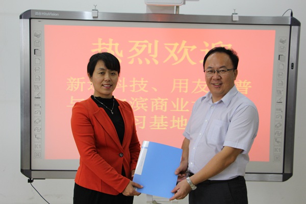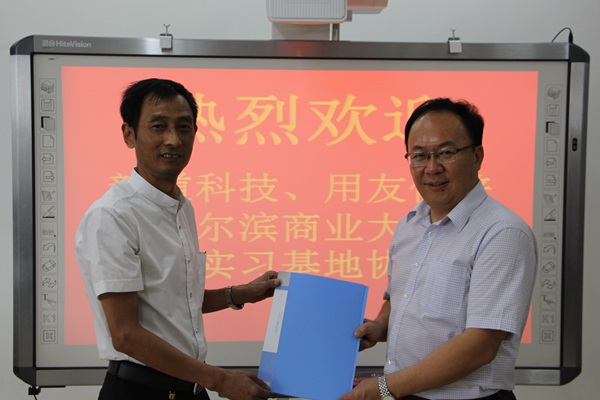 9月22日15时,哈尔滨商业大学会计学院与新道科技、用友优普在1405举行实习就业基地签约仪式。参加本次仪式的有会计学院院长张林教授、党总支书记陈慧华教授、副院长张劲松教授、党总支副书记刘天副教授、新道黑龙江分公司总经理李英奇女士、用友优普总经理平国亮先生、用友优普助理经理汪永平先生及其随行人员。