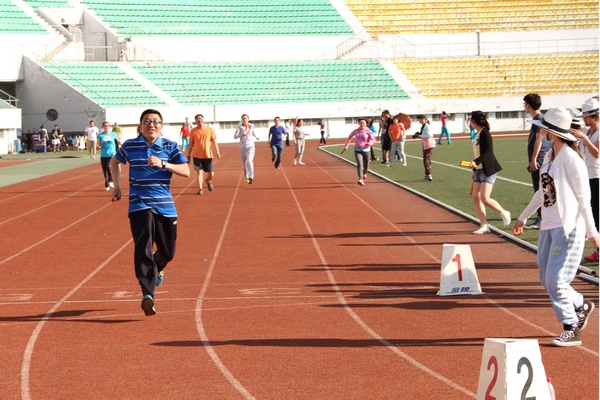 很快,激动人心的比赛正式开始了。运动健儿们奋勇冲击、勇夺第一的精神贯穿了比赛始终。他们矫健的身姿书写着会计学院顽强拼搏的传奇,他们响亮的呐喊映射着商大人别样的风貌,他们奋勇拼搏,他们一往无前!值得一提的是,本届运动会在教职工项目上再次突破革新。教职工项目分为径赛、田赛和娱乐项目,在100米、4×100接力、跳远、铅球等比赛中,会计学院的教师们积极地参与其中,尽管天气炎热,他们依然热情饱满,赛道上他们奋力拼搏、挥洒汗水,为同学们起到了良好的带头作用。而之后的娱乐活动更是让教师们在激烈的比拼中收获了别样的乐趣,体现了会计学院教师们严谨而又活跃的心态。运动会过程中,陈书记等各位领导走下主席台对观众席的同学们进行了走访,他们亲切的慰问话语萦绕在同学们耳畔,在炎热的天气里送来一缕缕凉爽的清风。