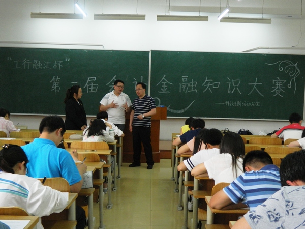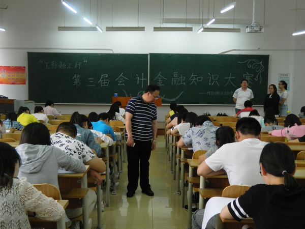 为提高会计学院同学的专业技能和知识,丰富同学们的比赛经验。哈尔滨商业大学会计学院科技创新活动站于5月27日举办“工行融汇杯”第三届会计金融知识大赛。科技创新活动站携手工商银行共同举办此次大赛。初赛为笔试形式,笔试时间90分钟。本次比赛受到学校各级领导的高度重视及大力支持。比赛期间,会计学院院长张林教授,副院长张劲松教授,2012级辅导员王博老师亲自到考场进行巡视.