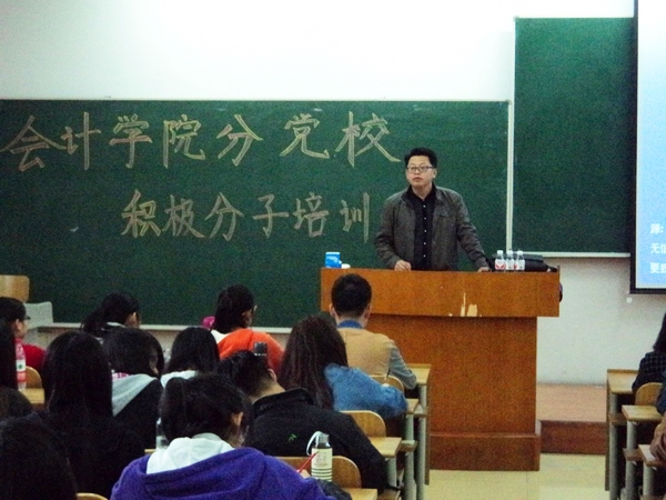 积极分子党课于5月12、14日在4205教室开展。此次培训的授课教师有:会计学院党总支书记陈慧华教授、管理学院党总支书记谭士元教授、法学院党总支书记赵国军教授、会计学院党总支副书记刘天副教授。参加本次培训班的同学为会计学院全体入党积极分子。