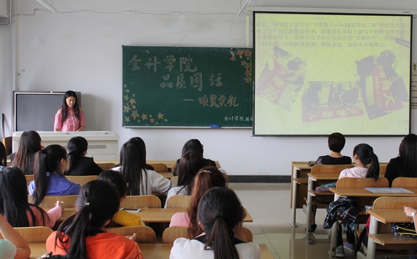 活动伊始,主持人周美辰首先公布综合排名前三名的班级,分别是国会二班团支部、ACCA二班团支部和会计一班团支部,随后,由陈慧华书记,郑磊老师,陆黎敏老师分别为三个获奖班级颁奖。随后,三个获奖班级的支书分别介绍了班级团活的经验和做法。国会二班团支部通过书籍共享,将班级每名同学最爱的书共同拼接起心灵与书籍的桥梁;ACCA二班团支部带领全班同学共同参观省科技馆,通过参观学习到许多科技常识,激发了同学们认真学习的热情;会计一班团支部将团活分为室内参观和室外活动两个部分,首先,以“中国梦、我的梦”书法绘画展览为主要内容,然后进行 “撕名牌大战”,以自己的方式践行中国梦。此外,本次活动充分发挥网络的阵地作用,进行微信和微博投票及评定,增强了活动的影响力和参与率。