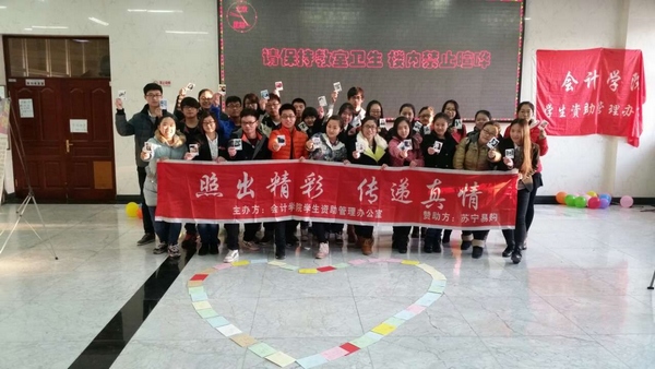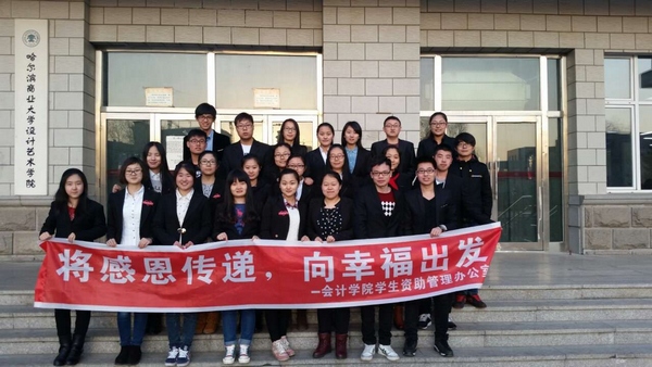 会计学院学生资助管理办公室主办的“将感恩传递 向幸福出发”主题活动于2015年3月23日早上七点半在四号楼一楼大厅举办,活动历时十小时。此次活动由会计学院学生资助管理办公室组织与安排,并且得到会计学院领导老师的大力支持。