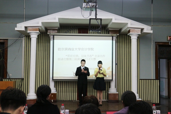 为进一步激发我院学生阅读经典的兴趣,提升阅读的品味,营造良好的读书风气,按照校团委的工作要求,会计学院于2015年3月31日17点30分,在B区多功能报告厅,举办了以“聆听经典,品味书香”为主题的名家名作朗诵会暨第三届演讲与口才大赛,此次大赛由会计学院学生会主办、人力资源部承办的。莅临大会的评委和嘉宾有会计学院党总支书记陈慧华教授, 2011级辅导员白璐老师,2013级辅导员李慧铭老师,2014级辅导员陆黎敏、奚迪老师以及学生会主席团及全体学生会干事。