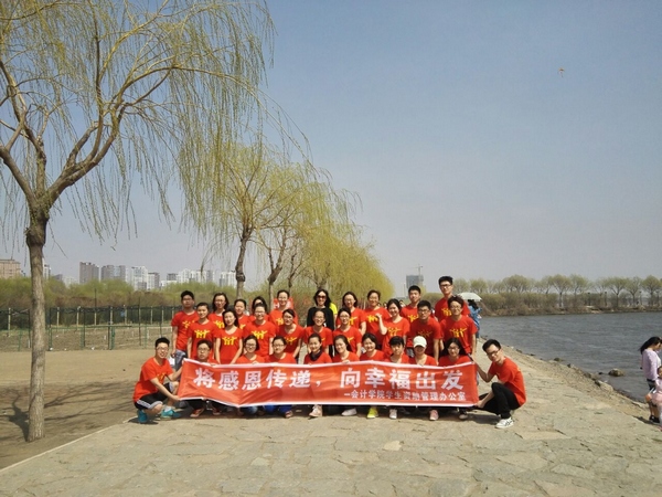 春意袭人,天气渐暖,趁着明媚的春光,会计学院学生资助管理办公室在党总支副书记刘天老师的带领下于2015年4月26日开展了“将感恩传递,向幸福出发”主题活动,活动以徒步走为主要形式,旨在倡导绿色出行,提高环保意识,走出宿舍,走进自然,增进组织成员间的了解。
