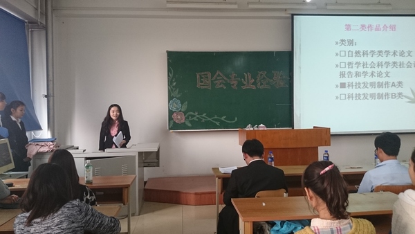 会议第二项,由 “挑战杯”创新大赛优秀代表2012级学生王博和栾春晓做“挑战杯”创新创业大赛的具体讲解。两位同学主要从比赛简介、参与方式、比赛意义以及比赛过程中应注意的事项等方面分别做出详细介绍。他们通过列举自己在“挑战杯”创新大赛中的研究成果和实战经验,为学生们指出了确定题材、选取调查方向、PPT制作、现场答辩等过程中应重点关注的问题。通过介绍,学生们对“挑战杯”创新创业大赛有了更为全面的认识。