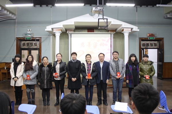 2014年11月27日16:30分,由会计学院青协蓝梦组织的献爱心慈善活动在B区招聘大厅隆重举行。莅临本次活动的老师有会计学院党总支书记陈慧华教授,会计学院院长张林教授,副院长张劲松、徐鹿教授,会计学院党总支副书记刘天副教授,2013级辅导员李慧铭、韩雪老师,2014级辅导员陆黎敏、奚迪老师。