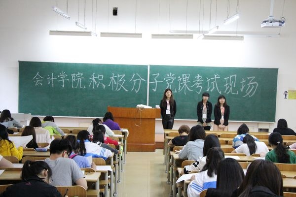 会计学院分党校于5月23日晚在一号楼与四号楼的教室进行了积极分子党课培训考试,同学们结合认真学习过的党章和老师们上课讲过的知识,认真的答题,经历了党组织对他们的严格考验。