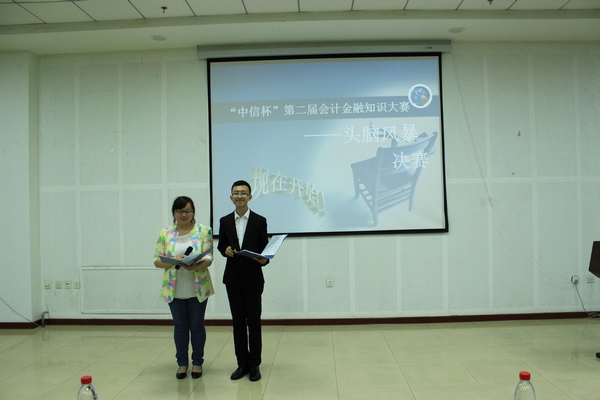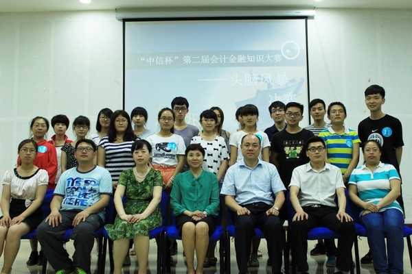 为了拓展同学金融知识面,发掘对专业知识的潜力,我院科技创新活动站于6月5 日下午四点半,在图书馆一楼学术报告厅举办了“‘中信杯’第二届会计金融知识大赛”。本次比赛由中信银行倾情赞助。比赛邀请了会计学院院长张林教授、党总支书记陈慧华教授、副院长张劲松教授、党总支副书记刘天副教授、团委书记2012级辅导员王博老师、2013级辅导员李慧明老师、专业教师卜穆峰老师和谷丰老师,与此同时,还非常荣幸的邀请到了本次比赛的赞助方中信银行行长张铁军以及办公室主任马传永等人担任本次比赛的评委及嘉宾。