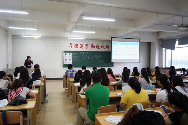 为了让会计学院2013级同学们更多的了解全国大学生英语四级考试,同时充分认识到自己在模拟考试中暴露出来的各方面问题,会计学院团委学习部邀请外语学院的武雯敏老师面向2013级同学,针对四级模拟考试中存在的各个方面问题于2014年6月8日下午5点在教学楼1413教室进行了外语四级讲座。