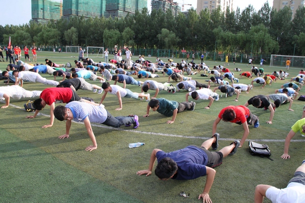本届体育节共举行了盲人敲锣、把你交给我、女子仰卧起坐和男子俯卧撑四个项目。“盲人敲锣”的比赛规则是每队4人两男两女,每队队员排好顺序并用眼罩蒙住眼睛,第一名队员持敲锣棒,当听到发令号后向前走进行敲锣,每名队员每次只能敲一下,无论敲中与否都要取下眼罩返回将敲锣棒交给第二名队员,以此类推,直到时间结束,按每队在规定时间内敲锣次数多少排名。这项比赛中学生工作秘书处获得头彩,网络中心获得第二名,学生团委和科技创新协会并列第三名。“把你交给我”的比赛规则是每队出两人,一男一女,其中一名队员蒙好眼睛,另外一名队员拉着这名队员的手跑,躲避障碍,最先到达终点的队胜利。本项比赛获得前三名的组织分别是学生资助管理资办公室办、舍务管理委员会和网络中心。最后一项比赛由全体成员共同参与,根据组织人员的口令节奏男女组同时进行俯卧撑和仰卧起坐比赛,动作不规范或与口令节奏不一致者立即淘汰。此项比赛中,2013级会本2班姜俊希和秘书处学籍部孙晨阳分别获得男子组和女子组的第一名,陈军华等其余9名男选手以及舍务管理委员会的孙瑶和季禹含等其余9组女选手也取得了不错的成绩。