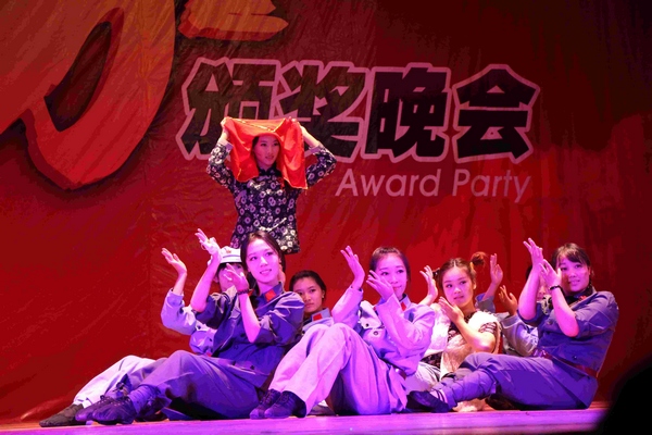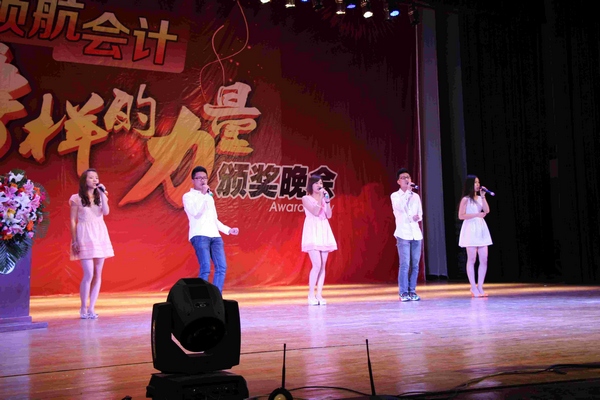 第二项,在学生会部长们带来的小合唱《在灿烂的阳光下》后,由张劲松副院长宣读了此次颁奖晚会的获奖名单。接下来学院领导老师为获奖同学颁奖,从省级三好学生,到优秀毕业生;从校级获奖同学到院级学生干部培训班获奖同学等奖项。晚会中间还穿插着由学生会声乐部献歌《最初的梦想》和会计学院红桃八舞团带来的《八女投江》。