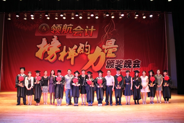 6月13日下午16:30,会计学院在东区大礼堂举办了以榜样的力量为主题的颁奖晚会。莅临本次颁奖晚会的嘉宾有会计学院党总支书记陈慧华教授,会计学院院长张林教授,会计学院副院长张劲松教授,会计学院党总支副书记刘天副教授,会计学院团委书记、2012级辅导员王博老师,会计学院2011级辅导员白璐老师,会计学院2013级辅导员李慧铭老师、韩雪老师,会计学院辅导员陆黎敏老师、奚迪老师。晚会由党总支副书记刘天副教授主持。