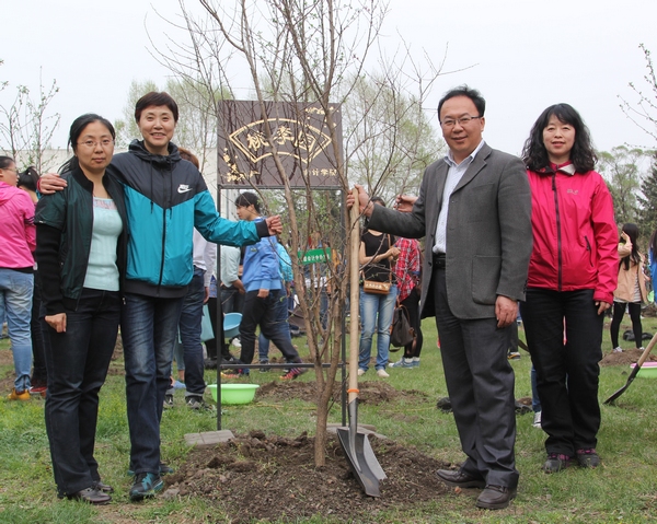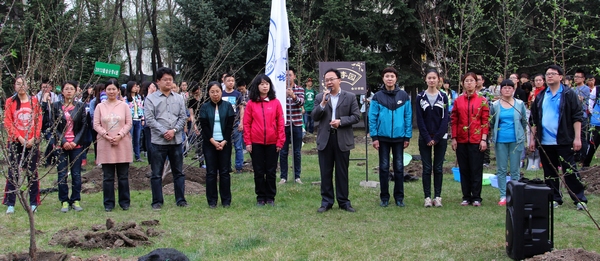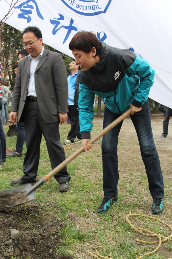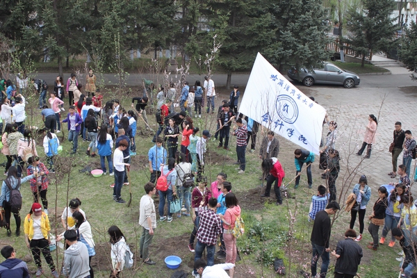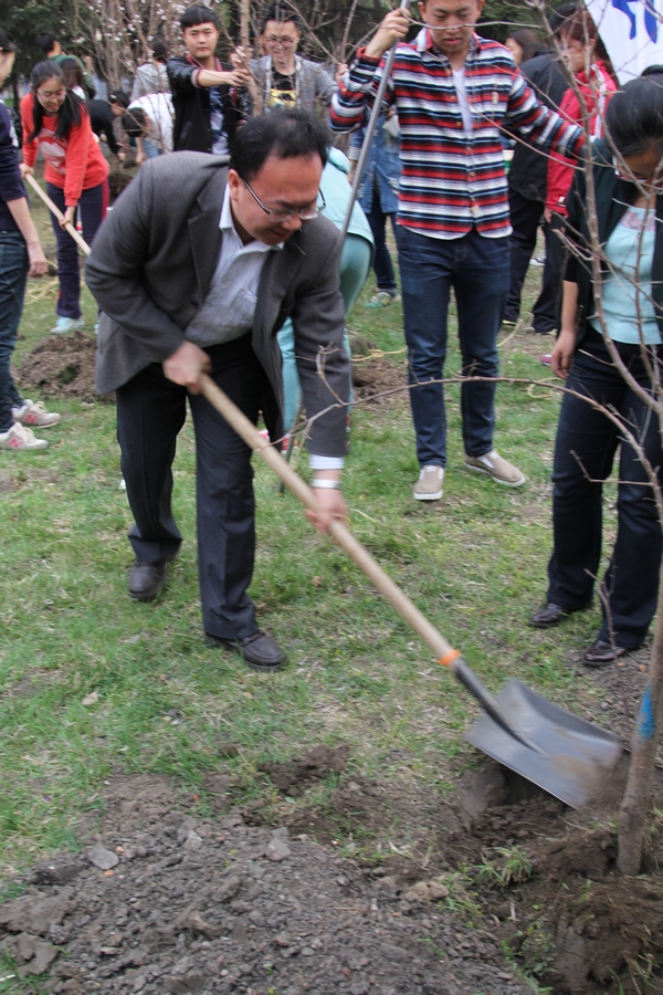 2014年4月25日下午4:30分,为了加强精神文明建设,增强师生爱绿、护绿、建绿意识,大力营造绿化校园的良好氛围,在学校后勤服务总公司的大力支持下,会计学院在B区食堂南侧组织开展植树活动。2013级部分学生代表和学院八个学生组织的代表参加了此次活动。莅临本次活动的有会计学院党总支书记陈慧华教授、会计学院院长张林教授、会计学院副院长张劲松教授、会计学院副院长徐鹿教授、会计学院团委书记、2012级辅导员王博老师、会计学院2011级辅导员白璐老师、会计学院2013级辅导员李慧铭老师、韩雪老师、会计学院辅导员陆黎敏老师、奚迪老师和校园管理中心王云松主任。
