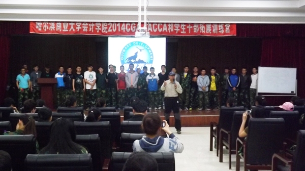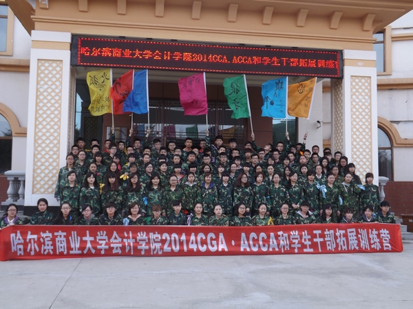 为了提高学生干部的全面素质,增强团队意识和超越自我的能力,培养学生干部强烈的进取心、顽强的意志和良好的沟通与合作精神,从而实现具有领导能力、创新意识、创业精神和团队精神的复合型、应用型人才的培养目标。2014年4月27日,由会计学院党总支书记陈慧华教授带队,团委书记、2012级辅导员王博老师、2011级辅导员白璐老师、2013级辅导员韩雪、李慧铭老师、辅导员陆黎敏、奚迪老师以及会计学院2013级CGA、ACCA全体同学和部分学生干部在哈尔滨市阿城区花果山基地鹰狼团队——专业拓展训练机构接受了一次惊心动魄、铭感终生的素质拓展训练。一天的时间里,对于所有参加培训的同学来说不仅是一次快乐的夏日之旅,更是一次团队精神的凝聚,一次挑战自我,超越自我,战胜自我,跨越自我的生命之旅。