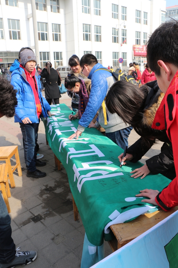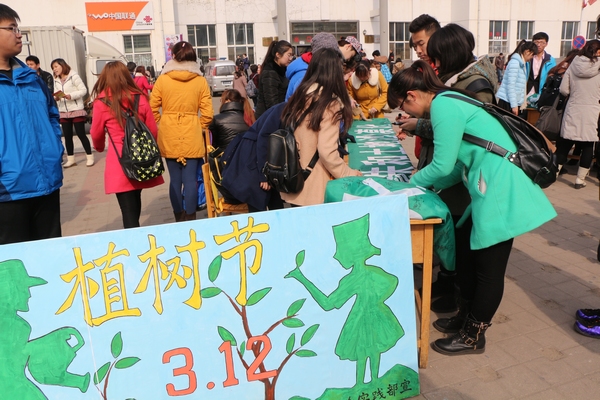 在学校后勤总公司和学院领导的大力支持下,3月11日中午,会计学院学生会青协蓝梦在校园内举行了“绿染校园”植树节宣传活动。本次活动在B区1、2公寓及食堂门口进行宣传。青协蓝梦的部长以及部员都参加了此次宣传活动。中午11点左右,活动正式开始,大家都热情宣传植树环保理念并让路过展台的同学在宣传条幅上签下自己的名字,青协蓝梦的同学们都非常耐心的对植树节进行宣传,整个活动洋溢着和谐的气氛。活动大概持续了一个半小时,在整个过程中,青协蓝梦的所有成员都努力宣传,用自己的方式为保护环境做出了贡献。
