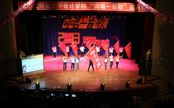 这是一个青春洋溢的舞台,这是一场激情荡漾的盛会,这是一杯沁人心脾的美酒,这是一次震荡心灵的回忆。在2013年9月29日晚17时,会计学院迎新大幕轻启。今晚群星璀璨,注定是一个激情荡漾之夜,注定是一个令人流连忘返之夜,注定是一个师生同乐的不凡之夜。
